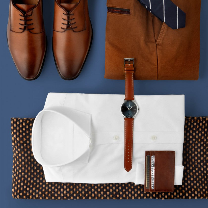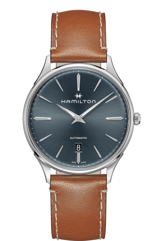 With the Jazzmaster Thinline Automatic, you can create a Hamilton timepiece tailored to suit your style. There are four different dial and strap color combinations to choose from so you can change your strap to suit your mood and a choice of tan, black and olive green straps available.