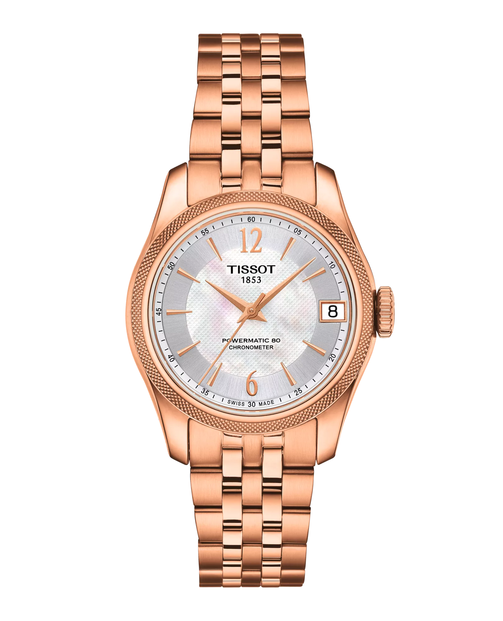 Experience timeless elegance and cutting-edge precision with the Tissot Ballade Powermatic 80 COSC Lady. This exquisite timepiece showcases a 32mm 316L stainless steel case with rose gold PVD coating and a mesmerizing white mother-of-pearl dial, making every watch uniquely beautiful. Its classic design is powered by Tissot’s revolutionary Powermatic 80 automatic movement with COSC certification, ensuring unmatched accuracy and sophistication.