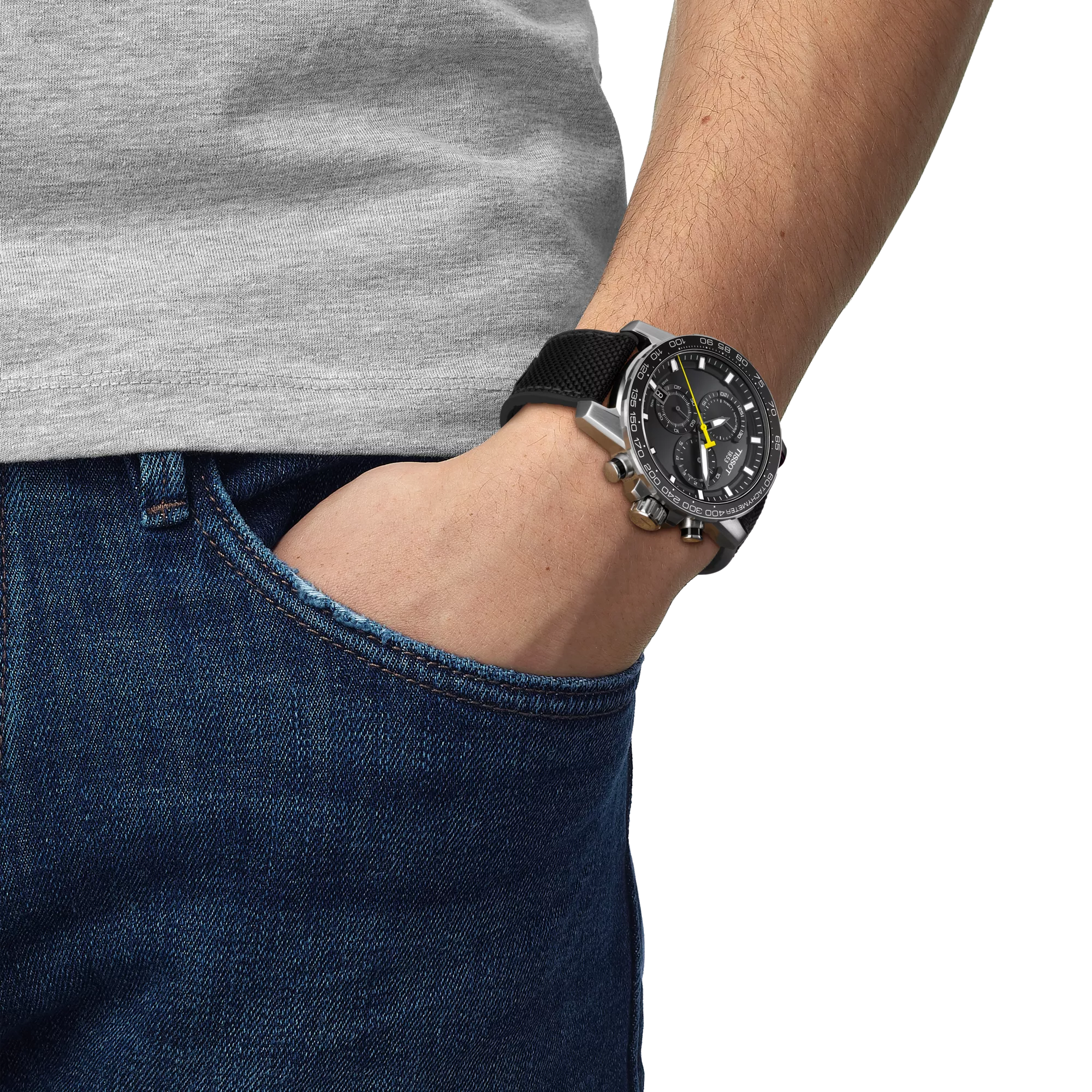 In tribute to the universal values of Sport, which is played on every continent by men and women of every origin and nationality, the SuperSport Chrono collection comes in a wide variety of shades. This wide offering will suit every wrist and taste at a price that aligns with Tissot’s intention of always offering high-quality watches at reasonable cost. The Tissot SuperSport Chronos come out on the pitch in team formation with eight references. Their imposing 45.5 mm bodies are shaped out of steel with various colour options, from black to rose gold via PVD technology. And the pack is dressed up with a full line of bracelets and straps that range from steel to leather with visible top-stitching. The details on the case are full of character.