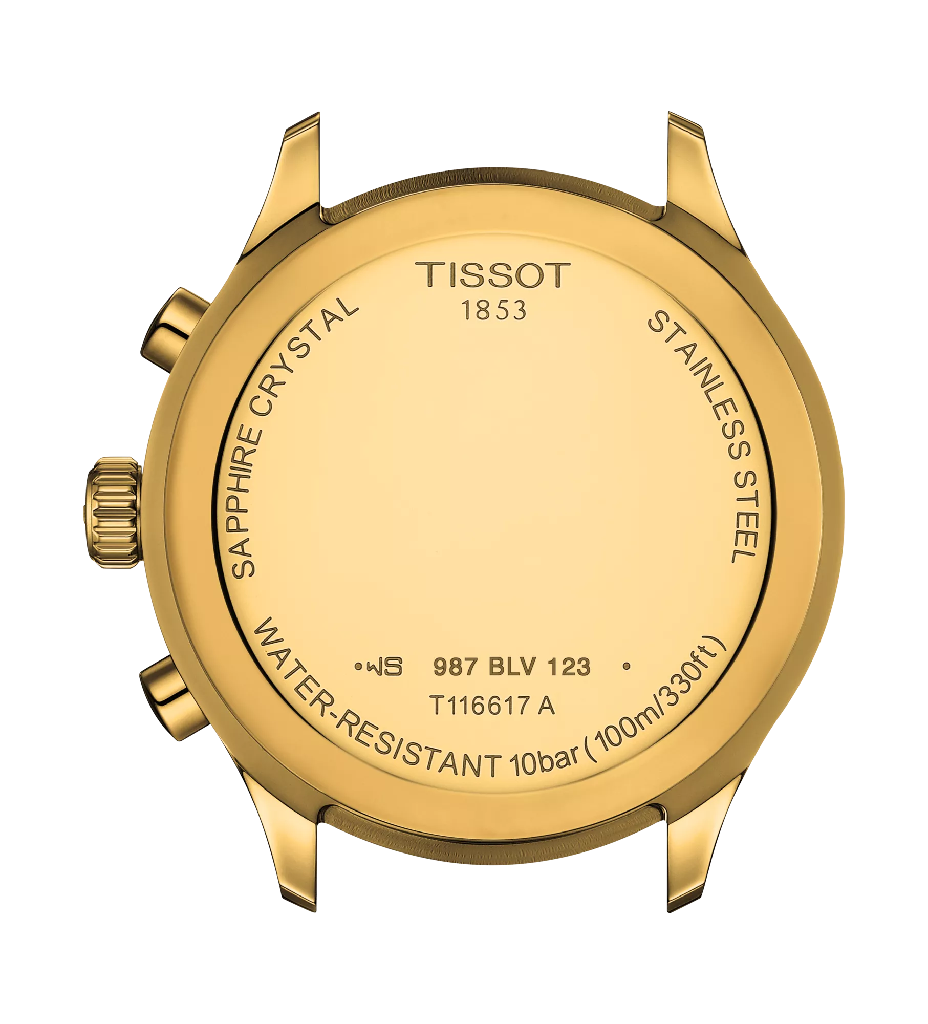 - 316L stainless steel case with yellow gold PVD coating