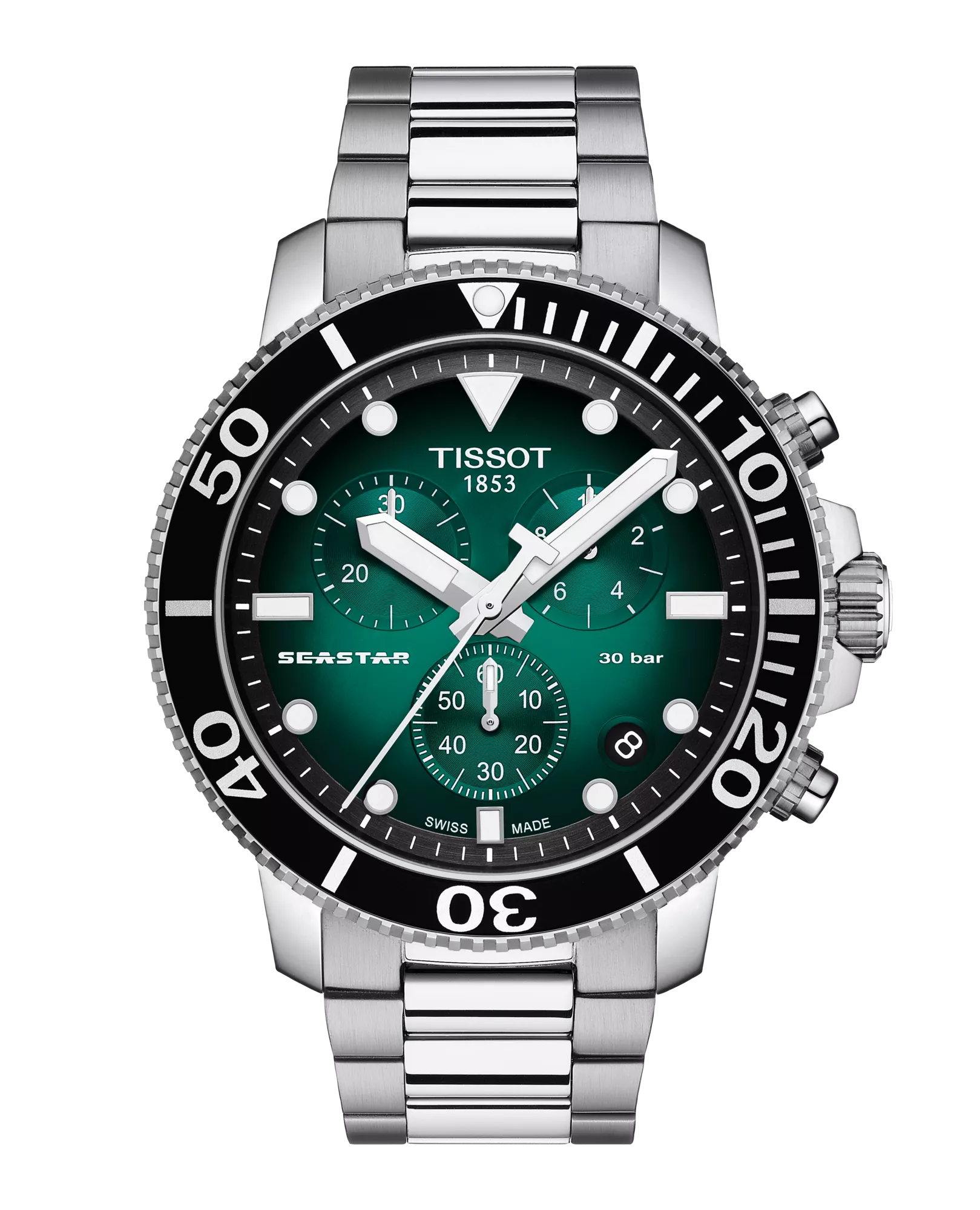 Both lovers of water sports and those who prefer to stay on dry land will be thrilled to hear the suavely sporty Tissot Seastar 1000 Quartz Chrono is now available as a chronograph, adding a plethora of useful functions to what has quickly become a popular watch. With a host of useful features, it is already an essential in the water, thanks to its ability to handle pressure up to 30 bar (1000ft) and its accessible quartz movement which promises unfailing reliability.