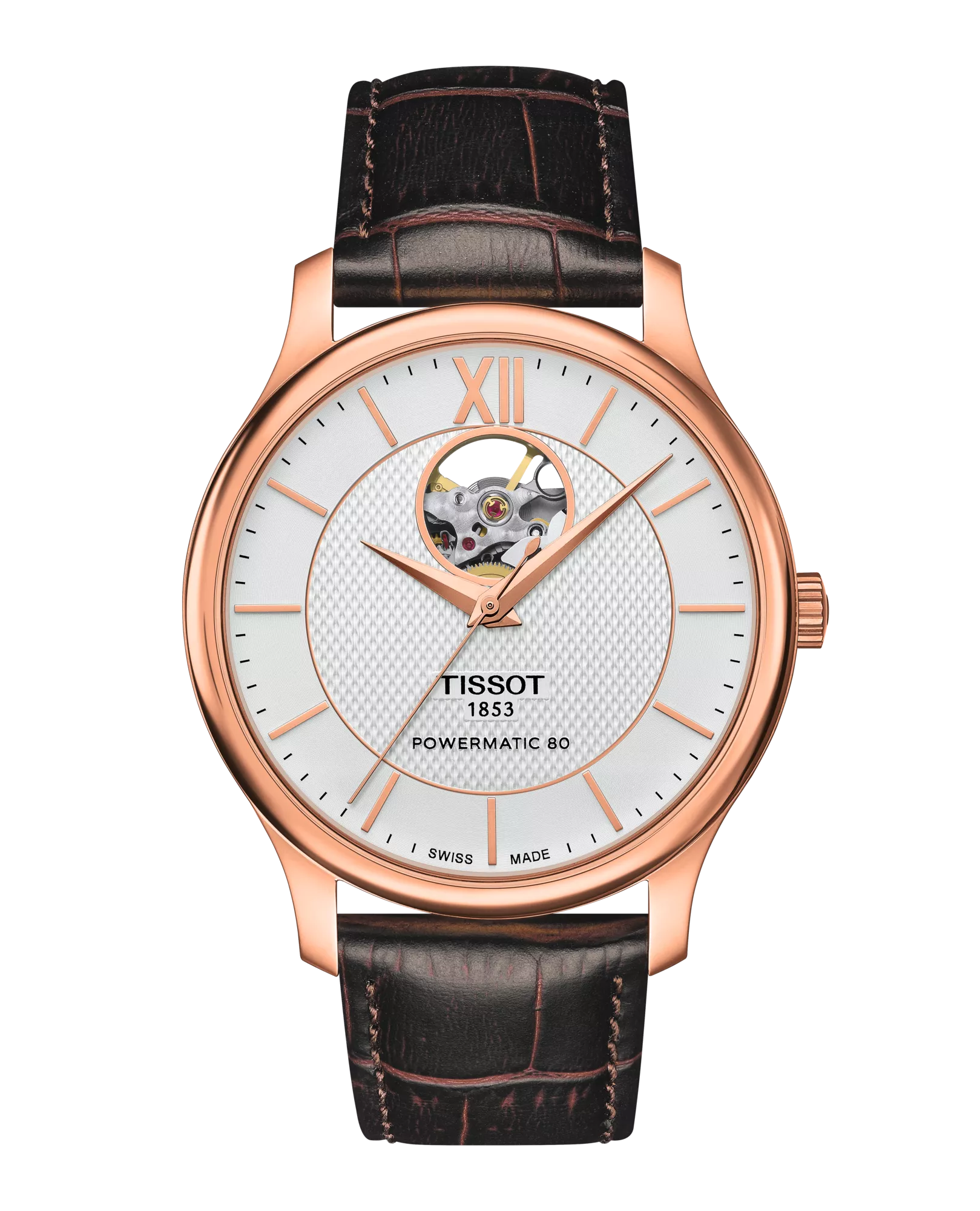 The Tissot Tradition family gives ultra-modern watchmaking a justified hint of nostalgia, giving today’s technology a vintage-style design signature. High-tech operation is perfectly balanced with classical details and subtle vintage-look finishes. These are complemented by design elements such as guilloche decoration and a gently curved case. The Tissot Tradition promises wearers endless hours of precision with sustainable good looks.